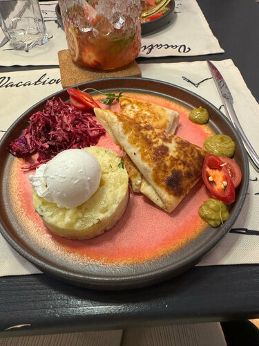 Колоритное место , большой выбор блюд. Понравились как салаты, так и шашлык , выпечка. Удачное расположение в самой центральной части набережной. Вид на море 😍 Обслуживание быстрое.