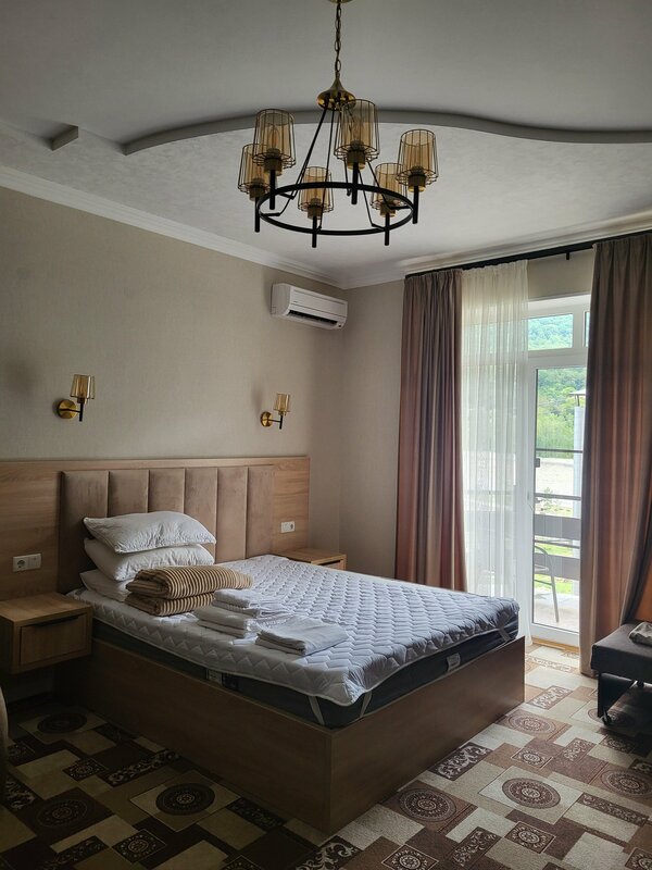 Отель "Ривер" стал изюминкой нашего отпуска 2-й раз посещаю этот отель за время отпуска в Краснодарском крае. На этот раз взяли номер полуделюкс. Сам по себе номер уютный, всё было убрано, большой открытый балкон и приличная ванная комната. Все ванные принадлежности были в наличии. По постельному белью всё отлично и всего хватило, были даже запасные подушки в шкафу. Также на территории есть бассейн с видом на реку и горы Отдельное спасибо Анастасии и Елене за гостеприимство, без вас "Ривер" не был бы таким, какой он есть! :)