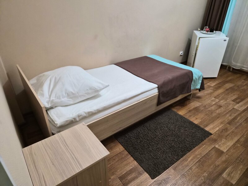 Жили 5 дней в командировке, одноместный номер, холодильник, телевизор из 90-х, за все время проживания ни разу не заменили полотенца и постель, ремонт подуставший. Звукоизоляция между номерами нормальная, но через дверь слышно так как будто все ходят через ваш номер. Питание отдельная тема, тяжело понять как завтрак может быть холодным при открытии ресторана в 7.30. Ужин фиксированный по меню, но 3 дня одно и тоже вводит в уныние. Один раз забыли положить шампунь и гель для душа. Если бы не выбор посылавшей организации, сам бы никогда не заселился, если есть выбор рассматривайте другие варианты.