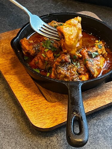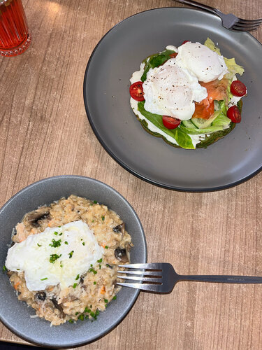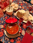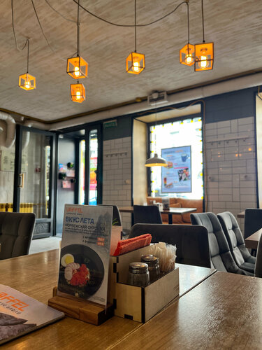 «Карпачо из говядины» - излишне кислый, возможно, из-за обилия каперсов, но при этом не соленый, не перченый. ( как это обычно бывает ) «Филе миньон» - хороший. К нему перечный соус - отличный. В позиции «стейк-салат» вкусный стейк но горькая зелень и водянистые безвкусные помидоры. С «бифштекс 4 сыра» возникла заминка с ожиданием, но того стоило. Лук в блюде показался лишним. Остался на послевкусие на пару часов. :( Чай «Груша&облепиха» насыщенный и сладкий, классный. В целом, место понравилось, вернемся попробовать другие блюда.