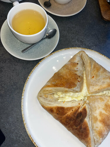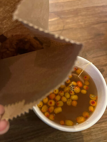 Рогалик - отстой, твердый и горелый, положили с собой в пакет, не обратила сразу внимания. Дама за кассой в возрасте не приятная. Сделала одолжение приняв заказ. Оплаты по карте - нет. 325₽ за чай… 🫠🫠🫠