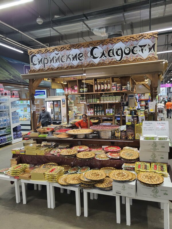 Легендарное место. Разок в жизни стоит посетить. Атмосфера настоящего восточного базара. Здесь можно достаточно выгодно приобрести напитки, сухофрукты, сладости, сыры, специи. Невыгодно мясо, овощи - за ними в кросс-доки. Ценники у разных продавцов ± одинаковые. Их экзотики - тропические фрукты, национальные продукт (Турция, Сирия, Тунис, Иран, Италия). Но ходить даже в будний день неудобно - очень плотный трафик. Отдельное внимание заслуживает ресторанная зона на втором этаже. Уж лучше есть дома. Потому что выбрать не из чего. Не буду рекомендовать конкретно туркмено-азербайджанское кафе Hann. Готовить не умеют.