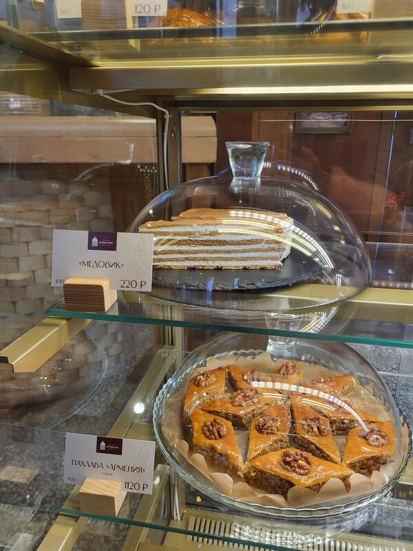 Павильон хоть изначально не был предназначен для Армении, но свои функции выполняет отлично - всё здесь эргономично разместили, всё в тему. Есть и магазин с армянскими товарами (ценник чуть выше среднего по Москве), пекарня, дегустанционный зал вин, ресторан и даже библиотека. Небольшой "кринж" вызывает аппарат под названием "Телепорт в Армению". Ну да пусть будет. Из нареканий - хотелось бы побольше чистоты. Везде. От кофемашины в пекарне до полок с армянскими книгами в библиотеке. Отдельный лайк персоналу - все очень человечные и готовы помочь.