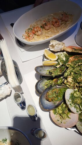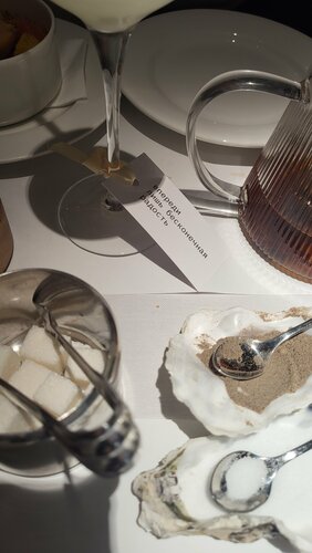 В восторге от заведения! Множество продуманных деталей, задающих настроение: инсталляция моря на стене, предсказания на ножках бокалов, приветственное лимончелло и лимончики на выходе )) Были компанией, много чего попробовали из меню, всё божественно! Очень нахваливали ежей и устриц, пасты с морепродуктами и десерты превосходны Порадовала работа персонала) Много оригинальных деталей интерьера А в уборной: россыпь гальки, шум волн и крики чаек — красота!