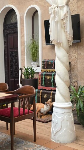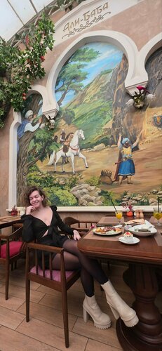 Будто в сказке! Захотела сюда на 8 марта, тк увидела на фото, как тут красиво) И ресторан подготовился: для всех девушек испекли вкусных и симпатичных кексиков 🌷 Обстановка в заведении очень приятная, антураж в стиле сказки Али-Баба, много природных элементов, а на фоне щебечут птички 🦚 Детали интерьера и работа персонала очень радуют ✨