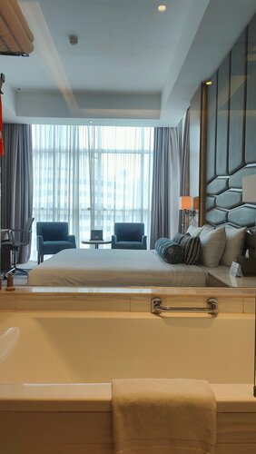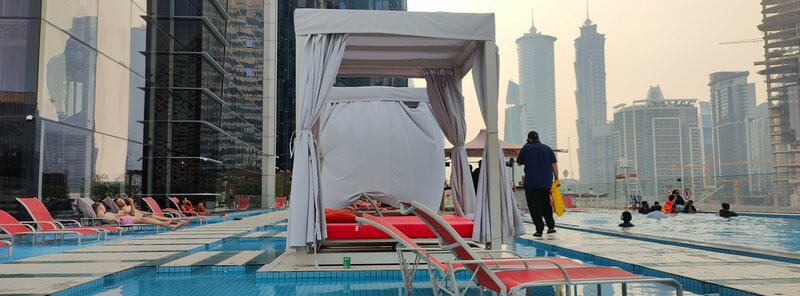 Расположен в районе Бурж Халифы Еда всякая разная, шведский стол, отличное качество Обслуживание отличное, убирают в течении дня. В номере все необходимое, все аксессы для ванной, включая мочалки и бритвы. В номерах есть гладильная доска и утюг. Чистота везде. Вид на канал и собственно на Бурж Халифу. Завтраки включены, можно брать без завтраков. На сегодняшний день вокруг стройка везде. Не особо мешает. Бассейн, тренажерный зал, салон красоты, СПА, кафе, бар, в холле магазин, продажа туров и аренда машин. На ресепшн есть русскоговорящий сотрудник.