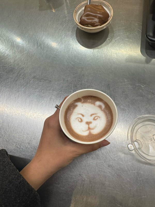 В кофейне работает очень милая девушка. Каждый раз, приходя туда, она рисует интересные рисунки. Таисия, у вас большой талант! Спасибо за прекрасное настроение , ваше присутствие в кофейне действительно её украшает.