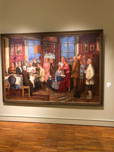 Посетили основную экспозицию в составе групповой экскурсии, проведенной сотрудником музея. Экскурсовод слишком много времени уделил рассказу о основателях музея на ступенях лестницы перед входом в залы, не сообщив ничего нового и интересного. В целом, повествование о картинах и художниках было перенасыщено специфическими терминами изобразительного искусства, понятными только лишь людям со специальным образованием, которым не обладали ни мы, ни наши согруппники по экскурсии, при этом исторические и житейские факты, связанные с картинами, упоминались мало и вскользь, а ведь именно посредством них происходит запоминание информации. Были немного расстроены тем, что не увидели легендарное полотно Петрова-Водкина «Купание Красного коня», которое забрали на отдельную выставку. Но в полной мере насладились мистическими шедеврами Шагала, где пытались разгадать тайну маленьких человечков, справляющих нужду в уголках картин. Малевич открылся как архитектор, хотя известный «Черный квадрат» впечатления не произвел. Кандинский - это невероятные цветовые решения, которые, на мой взгляд, и есть визитной карточкой художника. Экскурсия 1,5 часа и столько же еще ушло на самостоятельный осмотр после ее окончания. Хотя экскурсия могла бы быть менее скучной и более познавательной, все равно остались довольны посещением. Увидеть собственными глазами всегда интереснее, чем через экран монитора.