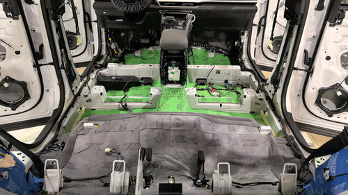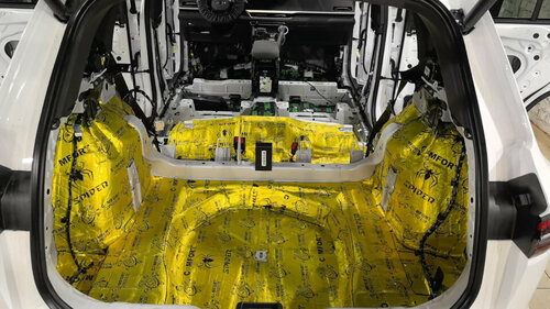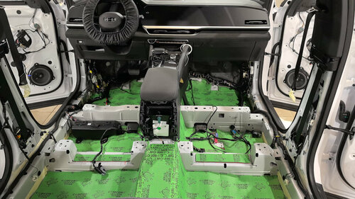 Отдал парням geely monjaro на полную шумку в варианте "Экстрим". Заезал в 9:00, выехал в 15:30. Делали 2-3 парней быстро и умело. Салон собрали качественно, ничего не сломали. Ничего не отваливается и не скрипит. Материалы перед работой греют в печке для лучшего прилегания. В целом работа выглядела слаженно и понятно. Вероятно не впервые делают такую машину. Во время ожидания можно посетить ТЦ рядом с кафе и кино, так же есть комната для ожидания с кофеем, интернет и ТВ.