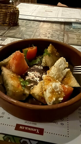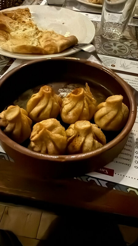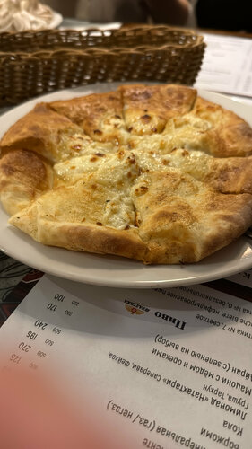 В целом ожидали качества в еде и в обслуживании так же как в Питере или Московской губернии.. но Посетители достаточно крепко пьют брань стоит на все помещение, замечание давать бесполезно- пьяному море по колено. Сама еда - хинкали на вкус хорошие свежие и аппетитные но как то странно они их делают… тесто подушечки тонкое и выпить бульон откусив аккуратно не получится… все разваливается. Короче они не плотные и не крепкие. Мясо мало а теста много вот как плюшки лежат на тарелке - фото скажет вам о чем речь. Впервые такие вижу. Хачапури и салаты вкусные, домашнее вино красное лучше не брать - помои. Для ресторана в центре города на площади уровень слабоват.
