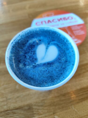 Хочу поделиться впечатлениями от повторного визита в ваше заведение и, конечно, от напитка «Голубая матча Черника – ваниль». 🍵Напиток: Попробовала на безлактозном молоке — отличный вариант для тех, кто избегает лактозы. Вкус — гармоничное сочетание ягодной свежести черники и сливочной нежности ванили.💙 Основа из синего чая анчан не только придаёт красивый цвет, но и добавляет напитку особую глубину.😍 Идеально для прохладной погоды: согревает и поднимает настроение одним глотком. 💁🏻‍♀️Обслуживание: Бариста проявила искреннюю заботу, уточнила мои пожелания и приготовила напиток с душой.❤️ Общение было лёгким и приятным — чувствуется, что персонал действительно любит своё дело. 🔥 😻Атмосфера: Уютно, достаточно света, не слишком много людей — идеально для работы или отдыха.🌞 Интерьер продуман до мелочей: мягкие цвета не утомляют, а стильные неоновые вывески добавляют современный акцент без излишнего раздражения. Большой выбор вкусностей и напитков — есть из чего выбрать.😌 В прошлый раз из‑за закрытого мероприятия не удалось в полной мере оценить все преимущества вашего места. В этот раз я наконец смогла насладиться и напитком, и обстановкой. Большое спасибо за тёплый приём и отличный сервис!