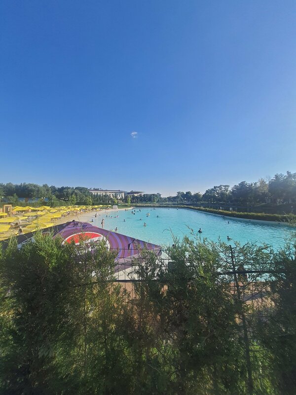 Really clean pool with a shower, shop with toys for water and swimming glasses and a cafe. And a nice atmosphere with music