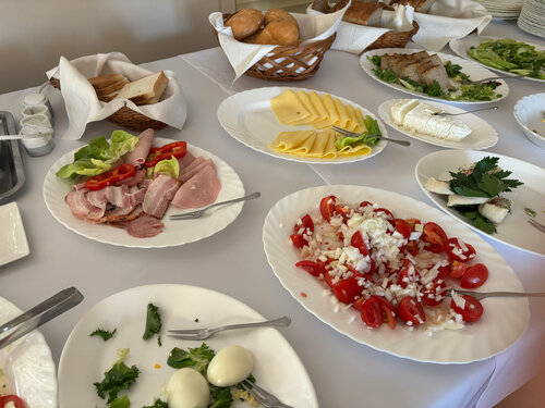 Чисто и свежо. Номер на четырёх человек был с двумя уборными. На первом этаже есть общественная кухня – с плитами и посудой. Продуктами для готовки можно запастись в магазине совсем рядом.