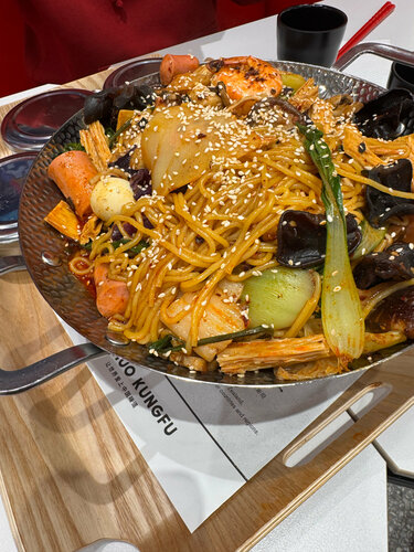 The atmosphere is nice, and there’s a good variety of ingredients and vegetables—though having more options would be even better. We ordered for three people and paid 450,000 UZS including drinks, which were quite pricey. Unfortunately, the chicken was undercooked and really disappointing, and the rice quality wasn’t great—it wasn’t the right type and we couldn’t eat it. Overall, it’s okay for a one-time visit just for the experience. The food -5/10 The atmosphere- 8/10 Drinks are very pricy and not enough options for big groups
