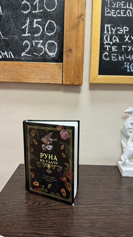 Маленькая, но уютная кофейня: • Приветливая девушка бариста • Кофе вкусный, довольно плотный, не кислый и не горький, всё в меру • Есть конфетки, десерты и всякая прочая еда • Мне дали конфетку вместе с заказом кофе, а это очень приятно • Рунная книжка за столиком, это очень круто, открыл свою руну Советую эту кофейню