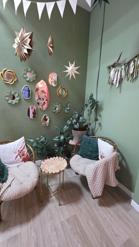 Хорошее пространство для посиделок с подружками и детские день рождения! Посуды много,хватает) удобно,что несколько комнат