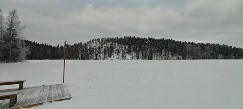 Здравствуйте. Я решил оставить отзыв о поездке в Карелию на туристическую базу НА ПАУЗЕ. хотя туристической базой ее трудно назвать, это 6 новых уютных домиков, уединённо изолированных друг от друга с видом на прекрасное озеро Ристиярви. Начну с дома: он прекрасен, он новый, чистый, в нем все что тебе нужно: от настольной игры до газового гриля на веранде. Невероятно удобные кровати, чистое белье, полотенца, тапочки, зубные пасты, щетки, высокоскоростной интернет, теплый и радушный приём хозяев. С веранды открывается шикарный вид на озеро в форме креста. Длинна озера около 5 километров. Я ходил на рыбалку, я увидел наконец белый снег и яркое солнце. Вечером в субботу посетил баню. Какой же мягкий пар дает эта новомодная печь, какой прекрасный вид открывается из двух окон парной, какой же вкусный чай можно заварить в комнате отдыха.