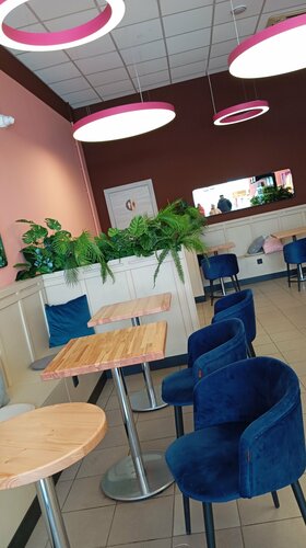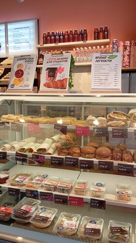 Помещение большое и просторное, внутри красиво. Но, после покупки продукции, осталась не в восторге. Набор эклеров -разочаровал, хотя всегда были вкусные. Пирожки с яблоками - чёрствые. Вот не знаю вся ли сеть испортилась или проблема в этом месте...