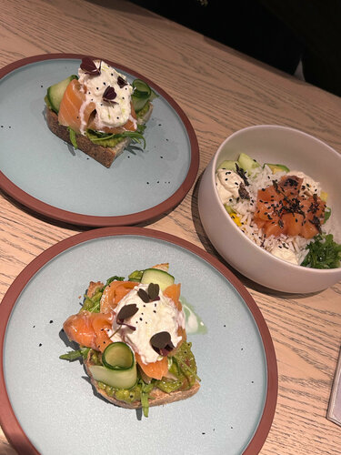 При посадке 5 человек в ресторане ожидание 15-20 минут: смузи и брускетты несли 10 минут, основные блюда около 20 минут. Невнимательно принимали заказ, перепутали наполнение поке, переделывали. Брускетты вкусные, качество и вкус основных блюд под большим сомнением. Не сказать, что молодой персонал компетентны. Разочарование.