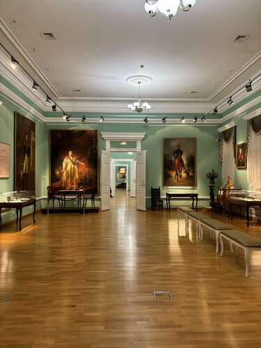 Чисто,просторно, в начале есть небольшой интерактив в виде голосового обращения помещика. Неплохая экспозиция!
