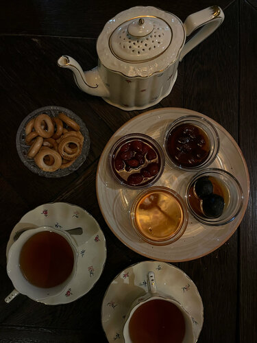 Были дважды,впечатление тоже двоякое)) В первый раз из плюсов запомнились вкусные котлетки из щуки и селедочка с картошкой. Остальные блюда своих денег не стоили,авторский лимонад был отвратительным,возвращаться не планировали. Но в Плесе не так много мест,где можно поздно поужинать- вернулись. Салат с креветками был вкусным (и не состоял из травы наполовину,как салат в первый раз),чай Чувилькин и варенье были отменными, жареха за вкусной, а грушевый десерт - нежным.