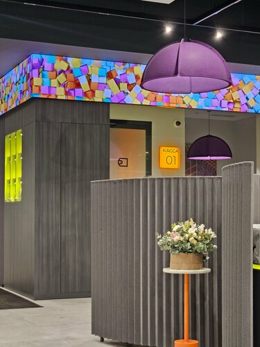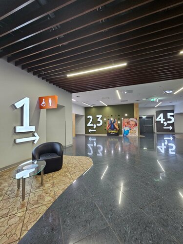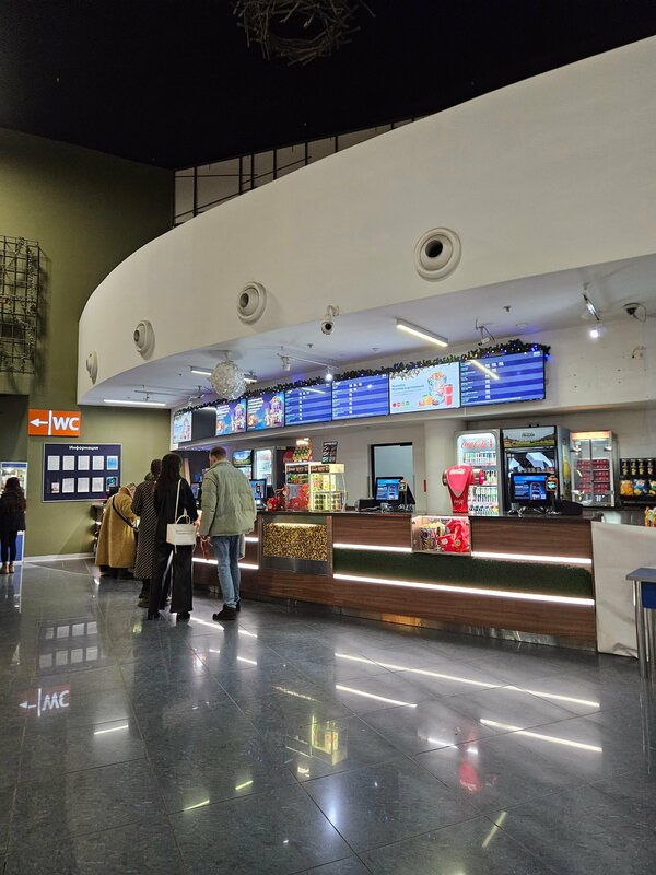 Если хотите увидеть кинотеатр из нулевых-десятых годов, вот он. Интерьер в космическо-неоновом стиле, присущем тем годам, сохранились старые кассы, которые сейчас не используют. Залы в целом хорошие, большие, но экран расположен высоковато. Есть зал люкс с кожаными сиденьями и откидывающимися спинками.