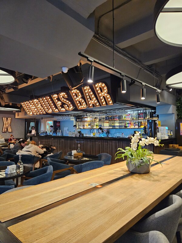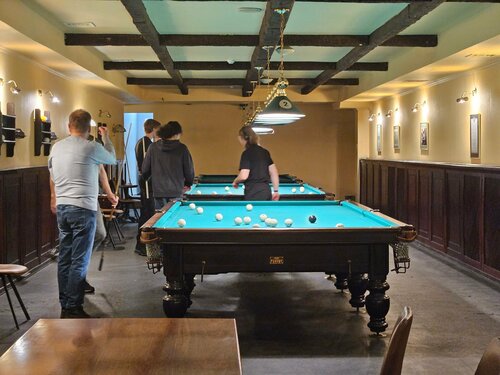 Как место для игры в бильярд — отлично, но как место, чтобы поесть и выпить — средне. Цены очень высокие, выбор так себе, обслуживание тоже среднее. Но как бильярдный клуб — 10 из 10.
