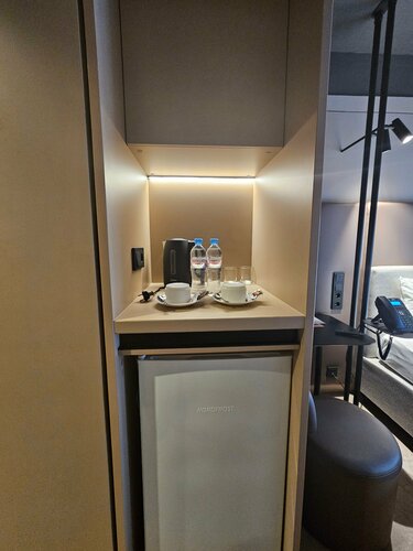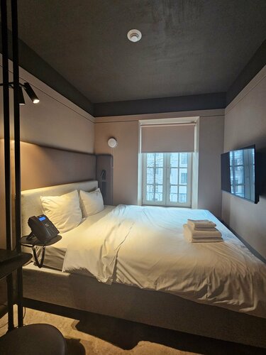 Пройдусь по пунктам: Местонахождение отеля просто 10 из 10, метро рядом, автобусная остановка рядом, даже вокзал не очень далеко, в шаговой доступности и магазины, и кафе, и даже торговый центр. Сервис отличный, на ресепшене отзывчивый персонал, помогали разобраться, также 10 из 10. Номер у меня был стандартный, врать не буду, маленький прям совсем, гардероба практически не было, два небольших шкафчика для вещей и всё, места может не хватить, также нету тумбочки или любого другого места для чемодана. Ещё пробегусь по минусам: это отсутствие какого-нибудь коврика при входе, у вас будет 100% лужа грязи с ботинок, удивило отсутствие тапок, сейчас, мне кажется, их почти везде выдают, ну и в идеале, конечно, микроволновку, место для неё там 100% было около чайника, но из-за цены на отель готов полностью закрыть на это глаза и в целом остался доволен номером, чисто, красивый интерьер, отличная кровать. Рекомендую отель!