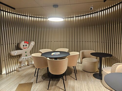 Чистый новый магазин с красивым однотонным дизайном, есть эксклюзивные товары, минус — зоны для перекуса нету, кофе достаточно дорогой.