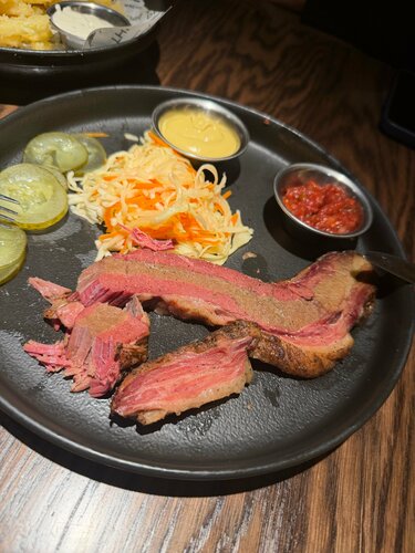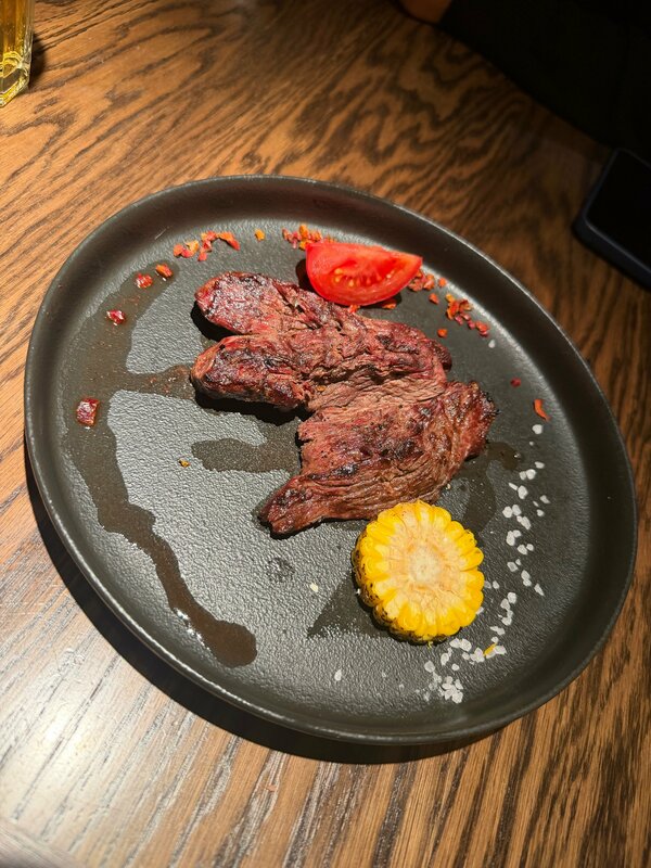 Хорошее место, все быстро, наверное это и плохо, картофель фри принесли теплым, такое чувство как разогрели, брискет тоже еле теплый и такой не как брискет а как тушенка, салат хороший, стейк тоже так себе, для детей однозначно лучшая замена вкусно и точки, второй раз сюда не пойду , обслуживание 4, еда 3