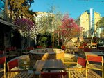 Удобное расположение и красивый интерьер в основном зале. К минусам можно отнести то, что столики расположены слишком близко друг к другу. На завтрак заказывали вафли из кабачков. Мне не понравилось. Блюдо подали холодным, вафля жесткая, по ощущениям очень много муки, креветки резиновые. Вкусным был только сыр страчателла.