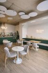 Красивое оформление витрины и очень вкусный капучино. Пока удалось попробовать только фисташковый торт. Очень легкий и совсем не сладкий. Я не совсем поняла его вкус, наверно потому что он с чем-то вроде сырного крема, а я его не люблю. Пожелания хозяевам кафе- у вас на входе очень низкий порожек, это очень опасно. Нужно или предупреждать на входе объявлением или все таки сделать ступень.
