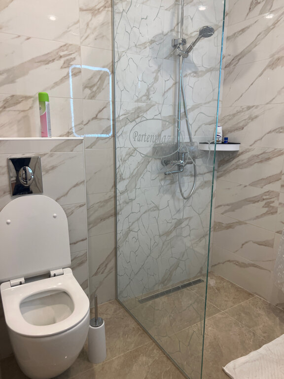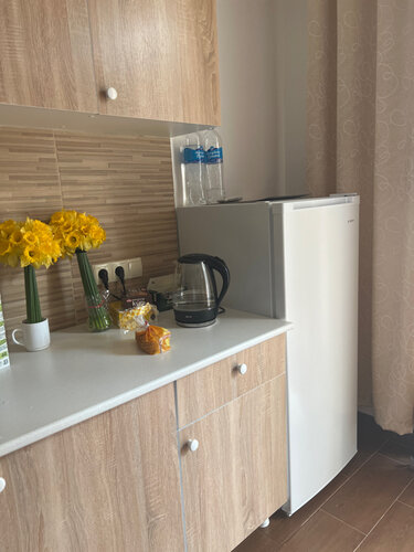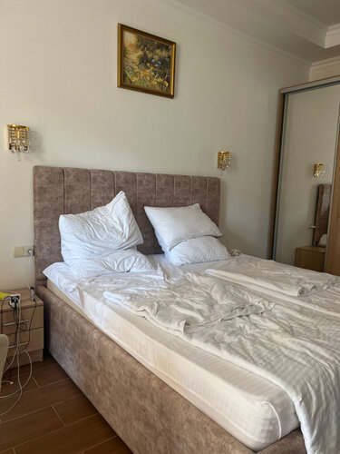 Прекрасный свежий светлый современный ремонт, очень тепло даже в прохладные апрельские дни, вид с балкона на море и медведь гору потрясающий! В полуметре от гостиницы вниз по лесенке сквер/парк для прогулок с детками, или в котором просто приятно посидеть вечером было бы в прохладе деревьев.