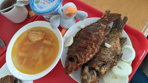 Приятная столовая с вкусной домашней едой. Порции не особо большие, но стандартным набором "салат, первое, второе и компот" наесться можно.