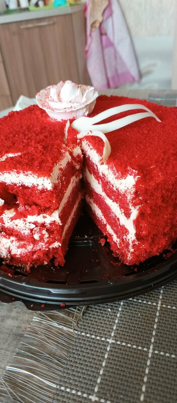 Купил торт Красный бархат, и разочаровался ,исполнение красивое , ровное, цвет правильный ,но вкуса никакого нет, от слова совсем, обычное советское пирожное, пустое, пахнет чуть чуть сливками, хотя у других производителей красный бархат был изумительно с каким то необычным вкусом и пропиткой, поэтому желаю вам повышения навыков и опыта в вкусовых качествах!!!