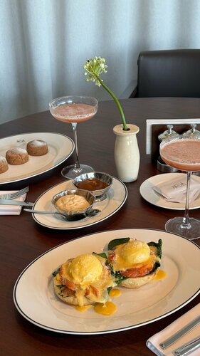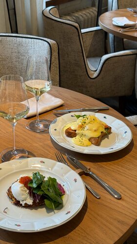 Отлично позавтракали, все вкусно и красиво! Приятные цены, стильный интерьер, приветливый персонал. Очень привлекла отдельная витрина с десертами😁