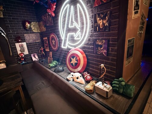 Потрясающее место! Не знаю где ещё можно найти такую же одновременно гиковскую тематику, но при этом чтобы оно не ощущать по-детски На фото коктейли: Локи, Блэйд, Шазам. Еще фото не сохранилось, но пробовал Геральда из Ривии. От Шазама в восторге!