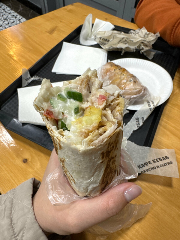 Отличная шаверма, едим тут часто) Большая, вкусная. Готовят быстро. Оплатить можно любым способом - на вкус это никак не влияет!