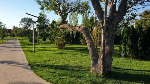 Неожиданно приятное местечко! Среди деревьев в тени можно полежать на гамаках и интересно так нарезаных каменных креслах. Парк выходит к морю. Чистая и тёплая вода, теплее, чем в самой бухте Геленджика.