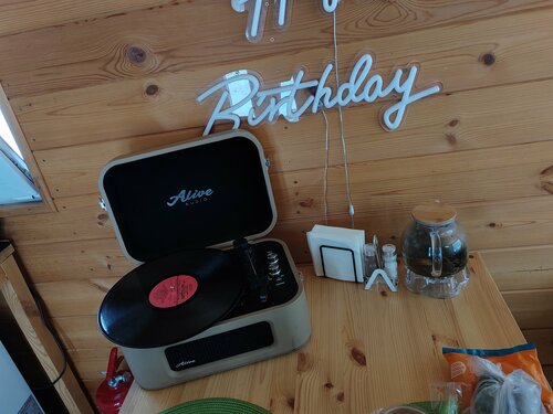 Идеальное место для празднования дня рождения! 🥳🏠 Снимали домик на выходные (2 суток), чтобы отметить день рождения и 8 марта, и остались в полном восторге! Взяли дополнительно баню и праздничный набор — это было лучшее решение. Всё продумано до мелочей: красивая сервировка, тематическая подсветка «С днем рождения», воздушные шарики, проектор и даже проигрыватель с пластинками создали невероятно уютную и волшебную атмосферу. Очень порадовал комплимент в виде кусочка тортика — приятно и вкусно! Отдельная любовь — это баня. Температуру стабильно держали 90 градусов, как мы и любим. Предбанник просто сказочный: просторный, светлый, с удобной зоной отдыха. После парения чувствуешь себя абсолютно обновленным. Каждый вечер жарили шашлык, а под открытым небом даже слепили снеговика! Виды с участка превосходные, воздух чистый — отличная перезагрузка после города.