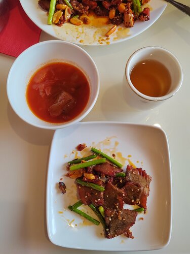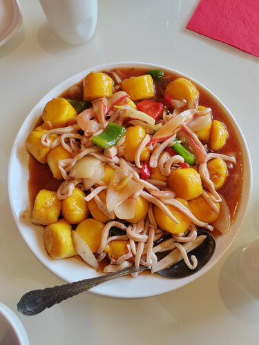 Была в этом ресторане/кафе. Если коротко: еда супер, всё остальное так себе. Атмосфера. Обычный зал, ничего китайского нет. Музыка играет нормальная, чисто, есть даже минимальная сортировка стола. Но меню старое, интерьер скучный. Оценка 1. Обслуживание. Нормально, но без души. Принесли еду, убрали посуду. Но официант не представился, фартук у нее грязный, приборы положили просто на стол (без подставки), зубочистки без упаковки. Вроде не бесило, но и плюсов нет. Оценка 3. Кухня. Вот за это респект! Всё очень вкусно. Брали острую говядину, картофель в кисло-сладком, тофу с морепродуктами, суп с говядиной и зелёный чай — пальчики оближешь. Меню большое, цены нормальные (тысячи 2-2.5 средний чек). Еда жирная, это надо понимать. Оценка 5. В итоге. В городе мало где можно нормально поесть, а китайской кухни почти нет. Поэтому «Сян Фу» выручает. Если хотите просто вкусно поесть — вам сюда.