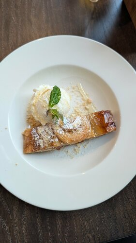 Отличное место для обеда/перекуса. Меню очень разнообразное, а ещё муж обрадовался выбору пива! Все блюда, которые тут брала, были очень вкусные. Особое место в сердечке занял яблочный штрудель 🌟 Обслуживание отличное, все очень вежливые. Само пространство тоже симпатичное, но удобнее для компании из двух человек. Ещё очень мило, что сюда разрешено с собаками, и даже есть лежаночка для песиков🥰