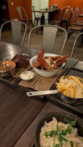 Клиентоориентированность 🔝 (Хотя небольшие проблемы в обслуживании всё-таки были) Приходили очень большой компанией для книжного клуба. Нам дали доступ к проектору, выделили очень большой зал, быстро обслуживали и почти не перепутали заказы 😀 Блюда очень вкусные, большой выбор напитков. Внешний вид помещения уже немного уставший, но нужно понимать, что это сидрерия, а не какое-то 'модненькое' место.