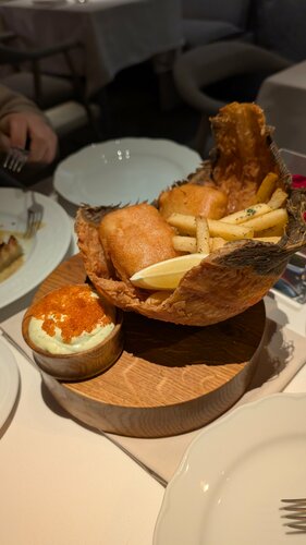 Место, которое мне очень сложно оценить. Здесь прекрасные блюда и безумно приятное обслуживание (редко бывает настолько хорошим). Но очень кусачие цены, из-за чего ты ждёшь невероятного опыта. Это точно не место на каждый день. Я точно не влюбилась и сомневаюсь что ещё сюда вернусь: я не люблю устрицы и морских ежей (а они здесь прекрасные, кстати!), мне хочется чего-то попроще и приземлённее. Но если вы гурман, то вам точно стоит сюда зайти! (Из важного: фиш энд чипс очень жирное блюдо, подумайте трижды, прежде чем его брать)