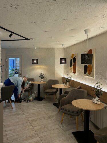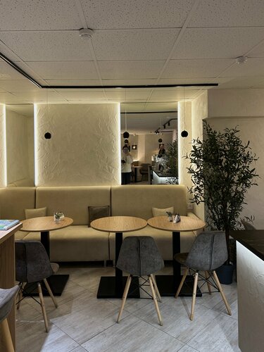 Неожиданная жемчужина! Часто ходила мимо, вход обманчиво выглядит простеньким – внутри всё современно, светло и красиво! Кофе вкусный, бариста приятная, есть отдельная комната для деток :) Не судите по спуску на цокольный этаж)