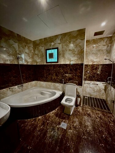 Остановились в отеле только потому, что у нас с утра был забронирован завтрак с жирафами и не хотелось долго ехать, так как начало в 8:00. Из минусов: - Нас заселили в номер, где не было никаких полотенец и халатов, после звонка на рецепцию принесли пляжные полотенца. С утра выяснилось, что при заселении нас в номер, персонал был в курсе, что полотенец нет, но, видимо, думали, что все обойдется 😳 - Стены и кресла чем-то заляпаны, что просто неприятно смотреть, не то, что сидеть - Окна не помнят, что их когда-то мыли - Так как номер смежный, слышимость из соседнего номера, просто катастрофическая: телевизор, дети. Лично я просыпалась 3 раза от крика детей и заснула только в 1:20, после того, как начала стучать в стену уже. Из плюсов: - Неплохой бассейн (много кто купается) - Зоопарк в 2х шагах - Просторный сан узел - Есть парковка В общем если выбирать, как отель на 1 ночь, то вполне нормально