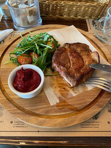 О-о-о! Ребята! Это очень вкусно! И морепродукты, и мясо. Стейки - просто огонь! Цена фантастическая. Мы, грешным делом, сначала подумали, что за сто грамм. Ну прекрасно всё. Порции хорошие, продукты качественные, цены более чем приемлемые, вкусно! Алкогольные напитки отличные. Интерьер интересный, уютно, есть веранды. В общем, рекомендую от души.