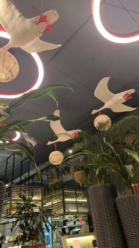 Отличный небольшой ресторан со светлым приятным пространством. Столы расположены просторно, диваны широкие. Интерьер хорошо наполнен элементами ( особенно летящие гуси и карусель готовых тушек ) и не вызывает чувства перегруженности. Все блюда оказались вкусными. Выбрали белое новозеландское вино и не прогадали, оно отлично подошло к рыбе. Мы попробовали : ошидзуси с угрем, дим-самы с угрем и грибами, роллы филадельфия, боул с татаки из тунца. Отдельно отмечу этот салат, потому что в нем удачно сочетаются соус, бобы, нежное филе тунца и листья салата, все продукты свежие, подача красивая, соответствует фотографиям в меню и на сайте. В завершение гастровечерв заказал харумаки с китайским пивом Харбин - это пиво посоветовал официант и можно сказать сочетание вкусов подходящее. На десерт брали утёнка манго и в подарок ко дню рождения нас угостили моти - приятный сюрприз. В меню не опробовано нами ещё много разных блюд, например жареное молоко , том ям , который похвалил коллега по работе, поэтому посетим этот ресторан ещё раз. Однозначно, я был впечатлен.