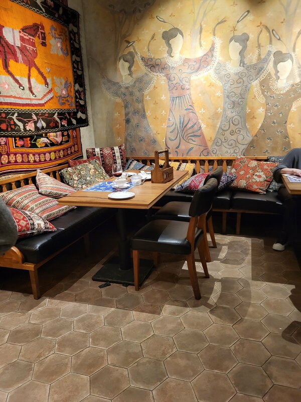 К сожалению, столкнулись с откровенным равнодушием к гостям. Началось уже со входа- мы стояли и ждали когда кто-то подойдёт, но увы, пока сами не окликнули, так никто и не обратил на нас внимания. Хотелось уйти... Лучше бы так и сделали. Пройдя за стол, ждали принятия заказа минут 20. Потом , после , ждали сам заказ еще минут 40-45. Стол нам выдели на 1.5 часа, из которых бОльшая часть прошла в ожидании. Официант, принявший заказ, повторил его, но в итоге- хлеб не принесли, хинкали забыли включить в заказ, тк после замечания, что очень долго ждём, уже все съели и без хлеба🫣 а хинкали так и нет... Сказали, что начали их готовить, но конечно ждать мы уже не стали. Попросили счет, исключая из него хинкали и хлеб. Каково же было удивление, когда счет принесли , а хлеб в счёте. Да, это небольшие деньги, но дело не в этом, а в полной безответственности! Деньги вернули, но дело тут не в деньгах! Мы не скандалили, не ругались, все просили вежливо и раз так, значит можно спустя рукава отнестись к гостям? Печально... может нужно было устроить скандал и встяхнуть персонал ресторана? Да, был выходной день 15 марта, да, почти ( были и свободные места) полная посадка, но как-то нужно справляться с волнением и организовывать приём гостей подобающим образом. При входе на второй этаж, сразу встречает груда грязной посуды, неубранные столы, пыль на поверхности. Досадно, что бывает такое отношение , настроение испорчено. Шницель с салатом сухой, соус к нему нам не предложили изначально, а следовало. Просить не стали, тк прикинули, что ждать еще 30 -40 минут на подачу соуса просто не сможем. Желаем процветания, но именно с этим рестораном срочно нужно провести работу с персоналом и кухней. Пререкались они( кухня и официанты) между собой при гостях, а где был администратор? Хороший вопрос, без ответа.