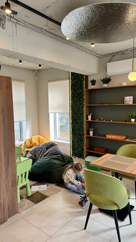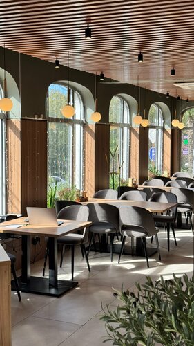 Сегодня всей семьёй заглянули в кафе «Амадин» и это было отличное решение! Место чистое, уютное, с современным дизайном в стиле лофт на двух этажах, есть детская комната, где дети резвились в своё удовольствие, и отдельный зал для закрытых торжеств и праздников. Концепция заведения вдохновлена амадинами - маленькими птичками, которые живут только семьями и погибают в одиночестве, что символизирует силу семейных уз. Нам очень понравилось обслуживание, вкусные салаты, паста, бараний кебаб с сыром, плюс качественный кофе. Парковки особо нет, но рядом улицы для стоянки, а в 50 м остановка и сквер «Фестивальный» для прогулки с детьми. Единственное пожелание — повесить шторы для большего уюта. Благодарим за гостеприимство 🤝